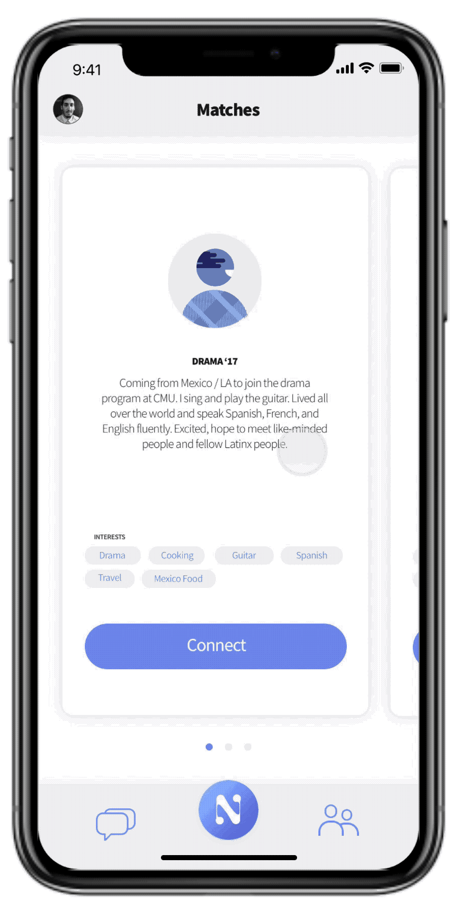 Naya is an intelligent networking and support platform that connects incoming college students to create an inclusive campus experience and build a support network